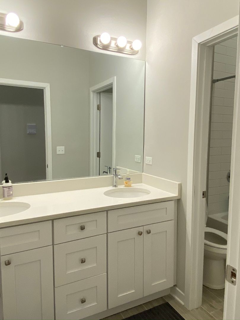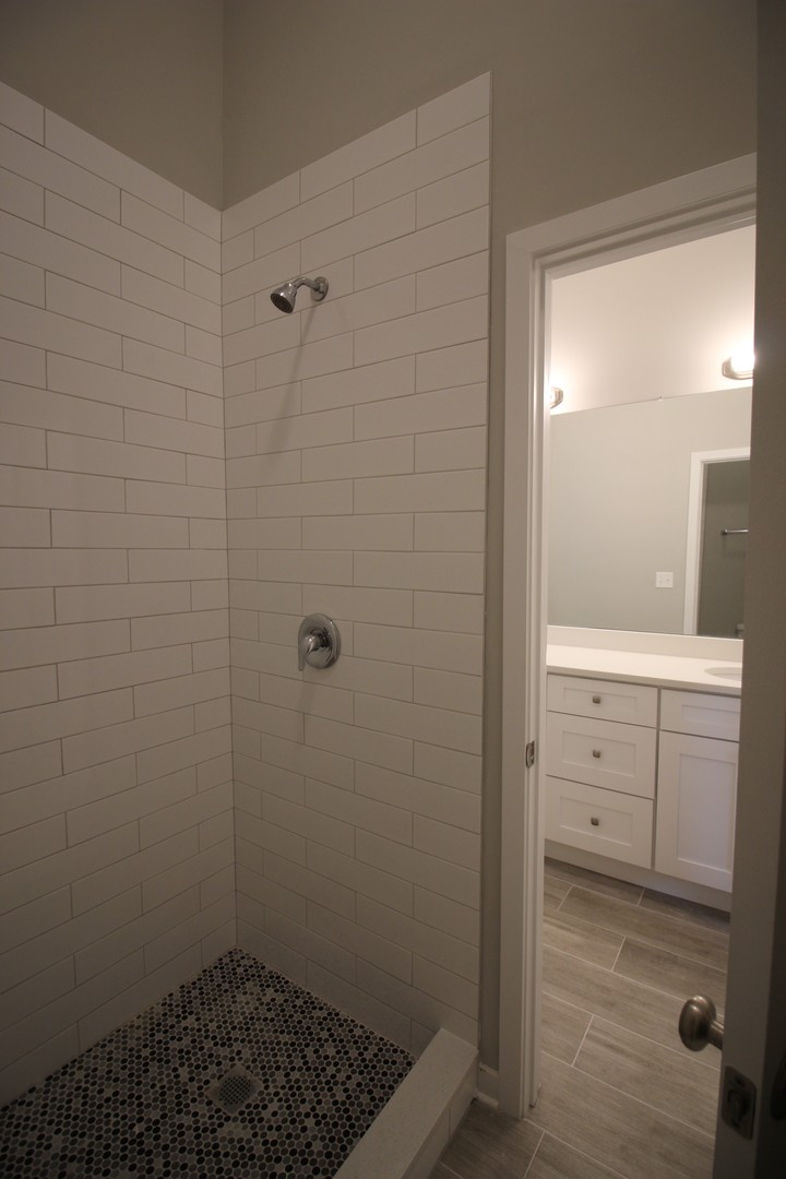 -2 Gorgeous Brand New Bathrooms w/ White & Grey Tile, Double Sink Vanity & Fixtures