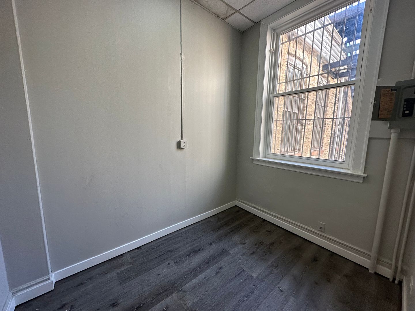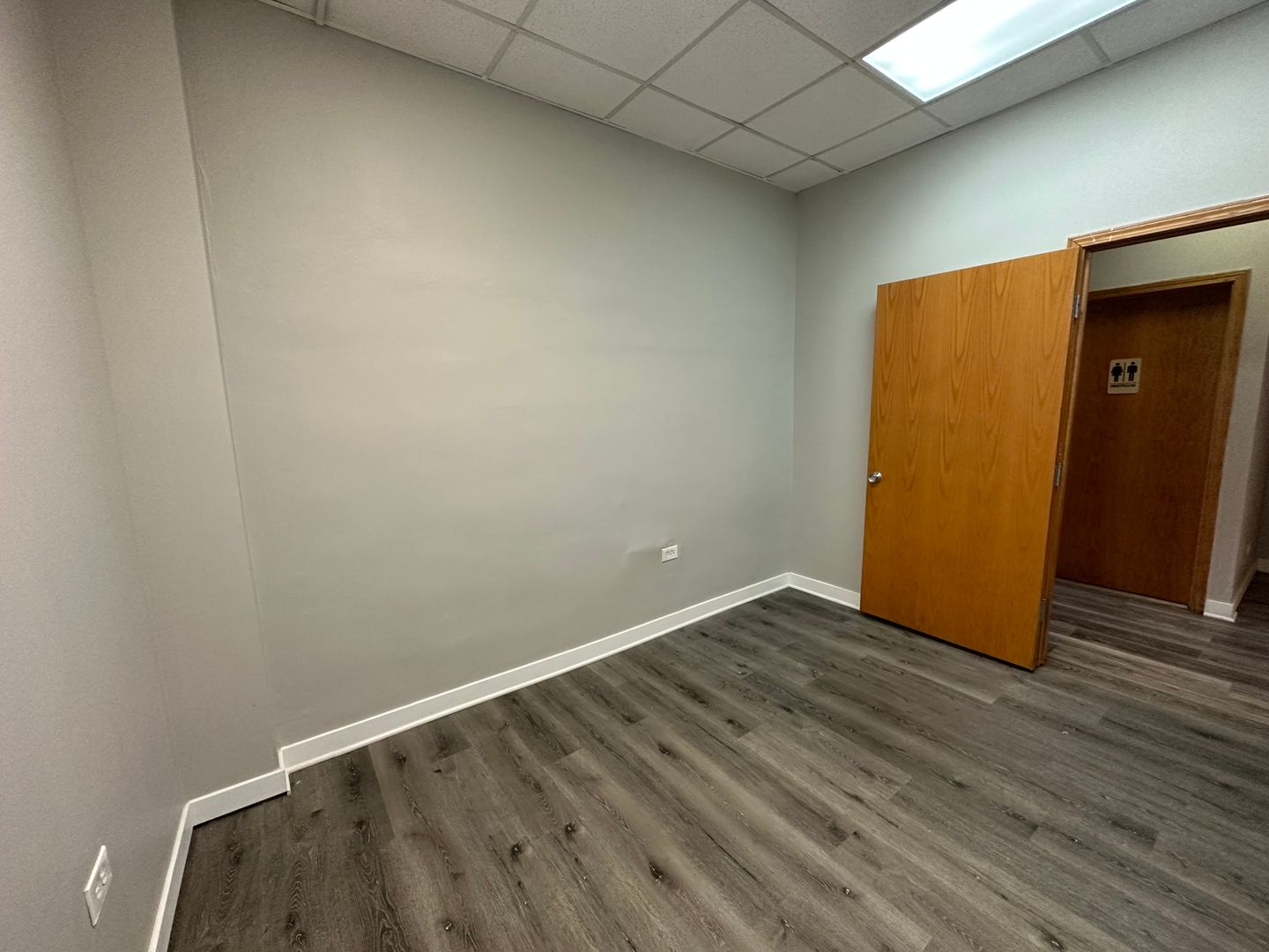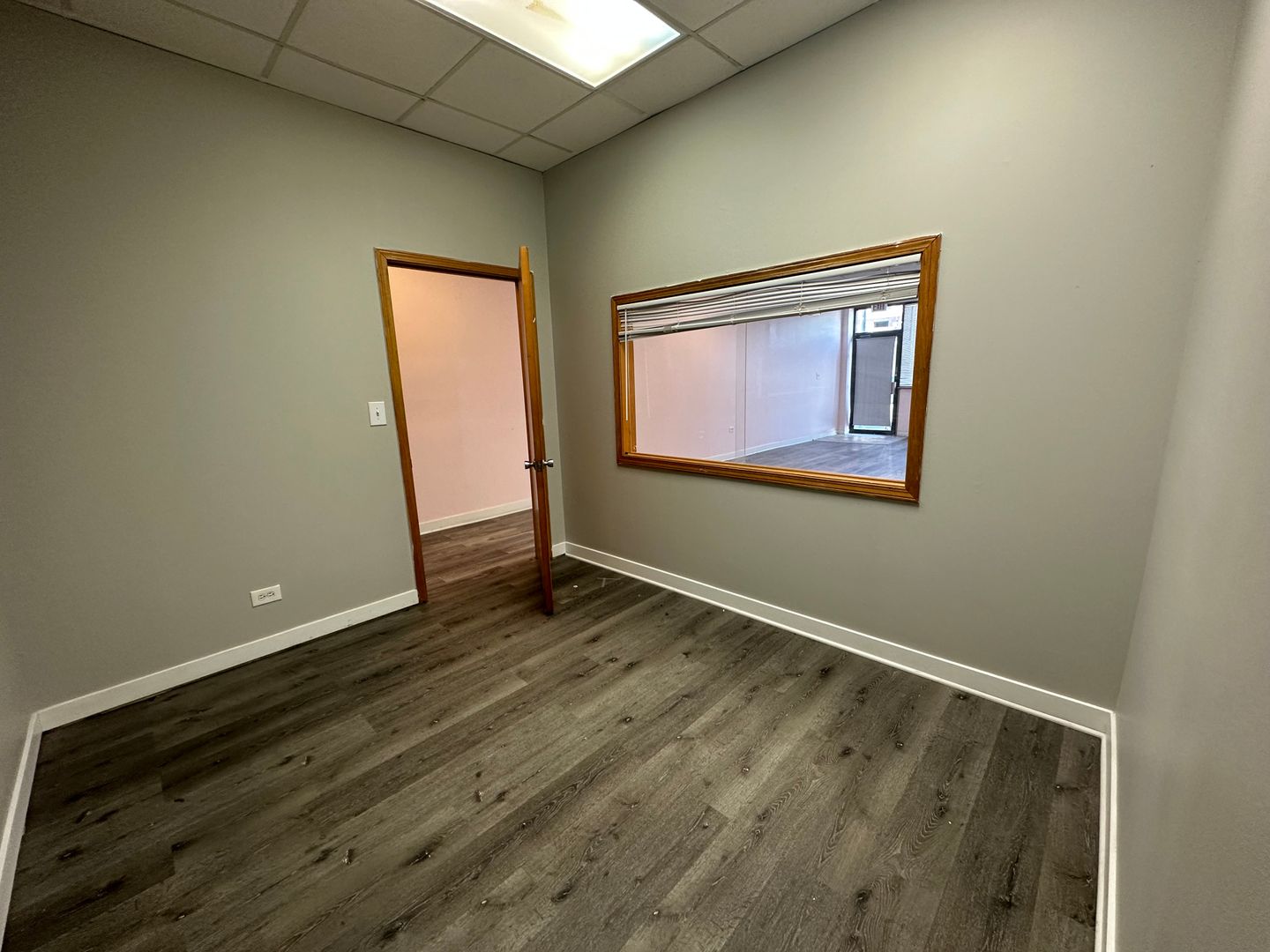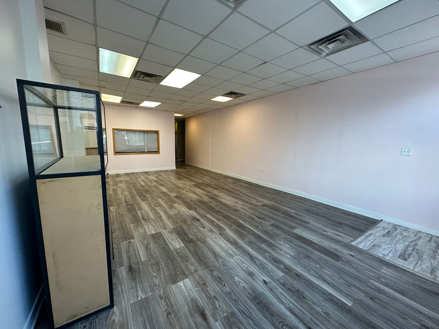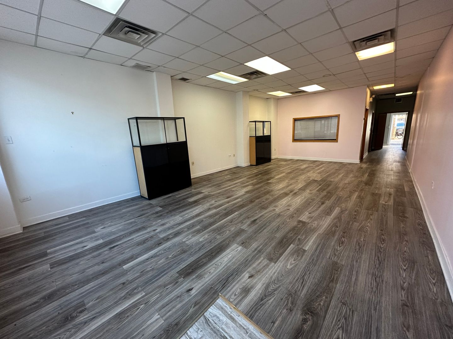 This versatile 1,200 square foot storefront features a functional layout that includes open common space, three private office rooms, a bathroom, and a kitchenette—ideal for a wide range of uses such as retail, office, medical, or service-based businesses.
