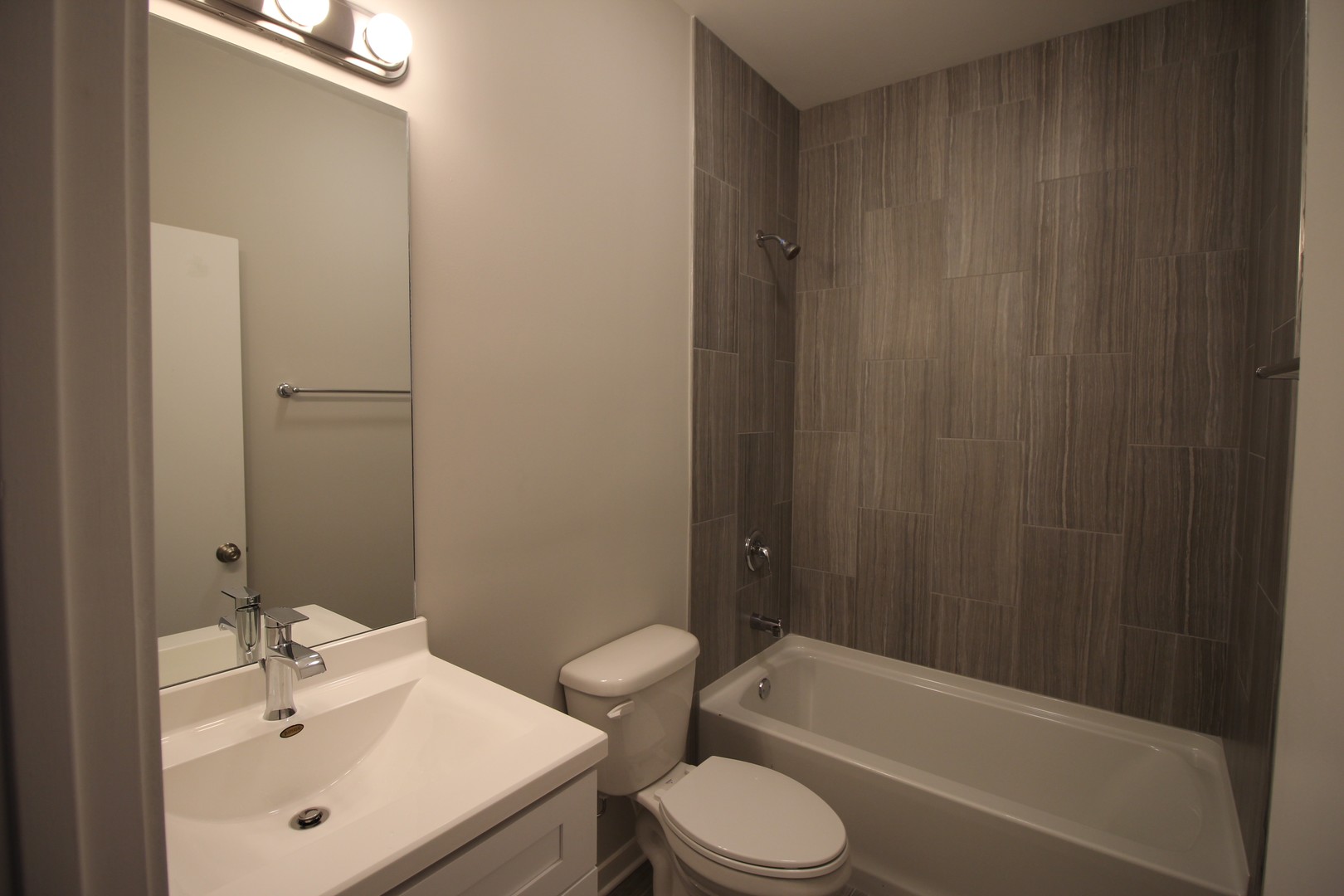 Beautiful Grey Bathroom Tile with New Tub